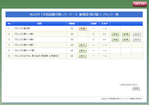 実行ボタンが表示され、再度同じブロックが受験できるようになります。